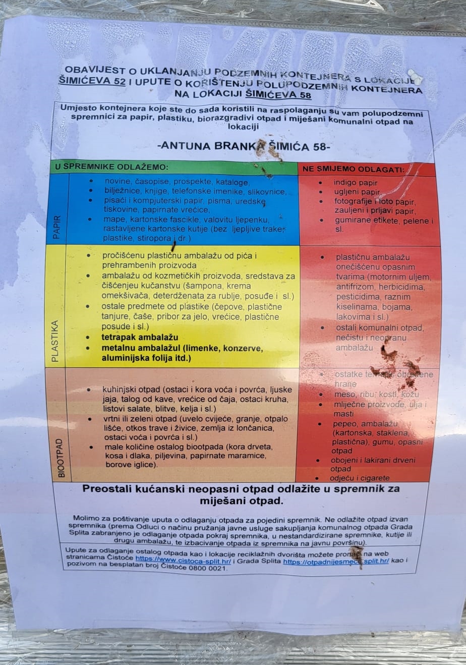 Unatrag nekoliko godina Splitom su se počeli postavljati polupodzemni spremnici, koji se, istini za volju, još nisu pokazali najboljim rješenjem za čistoću grada. Doduše, nisu ni zaživjeli u punom smislu te riječi. Preteča polupodzemnih bili su podzemni spremnici, postavljeni na u nekoliko kvartova, na Blatinama, na Brodarici i na Zenti. Od svih je ostao u upotrebi samo na Zenti, u Zajčevoj ulici. Ostali su uklonjeni i zamijenjeni polupodzemnim kontejnerima, primjerice u Terzićevoj ulici, ili su van upotrebe, na Poljičkoj cesti.