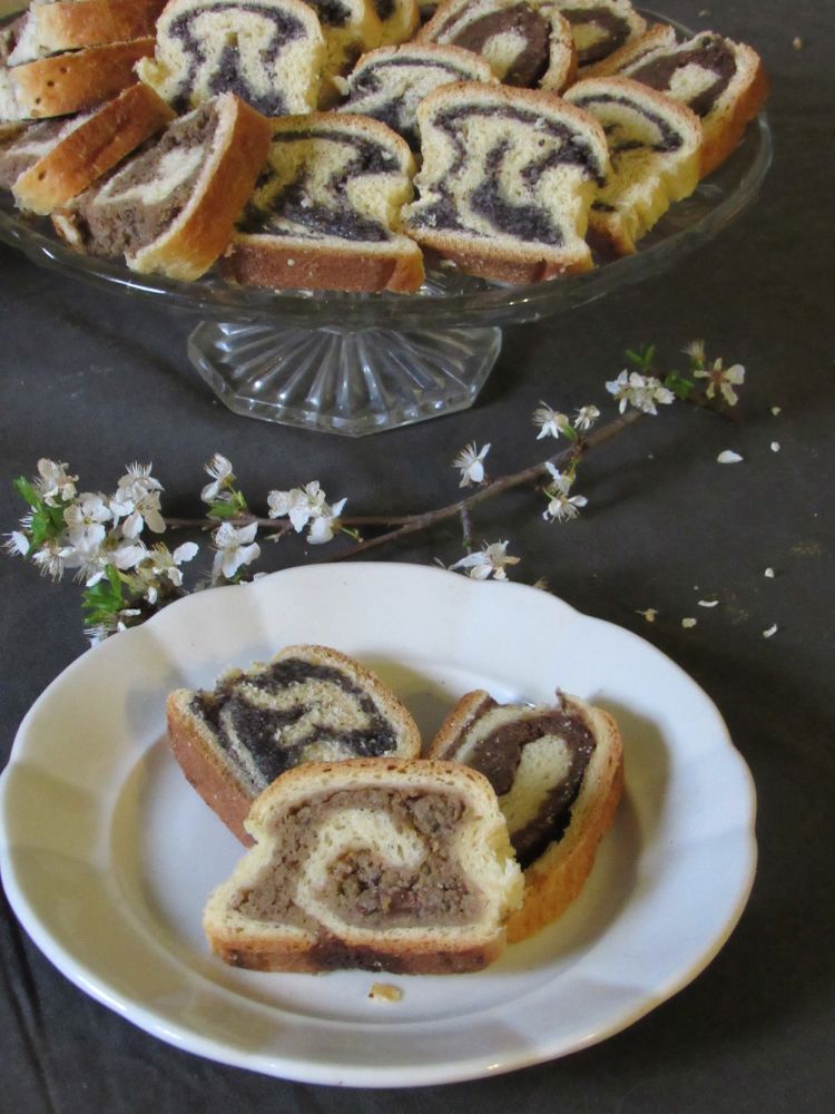 Sve isto kao i kod nadjeva od maka samo orahe i šećer prokuhati i prelit preko oraha. Od posoljenog bjelanjka istucite snijeg i lagano ga umiješajte u hladni nadjev. Napomena: Ovisno o tome koliko su sitno - krupno samljeveni, mak ili rogač mogu upiti manje ili više mlijeka. Ako su krupno samljeveni upiju više mlijeka. Dakle, ako je nadjev čvrst, suh i ne da se razmazivati po tijestu treba mu dodati još mlijeka i malo pekmeza ili naribane jabuke za svježinu nadjeva. Na tijesto koje izbockamo vilicom razmažemo ohlađeni nadjev i savijemo...
