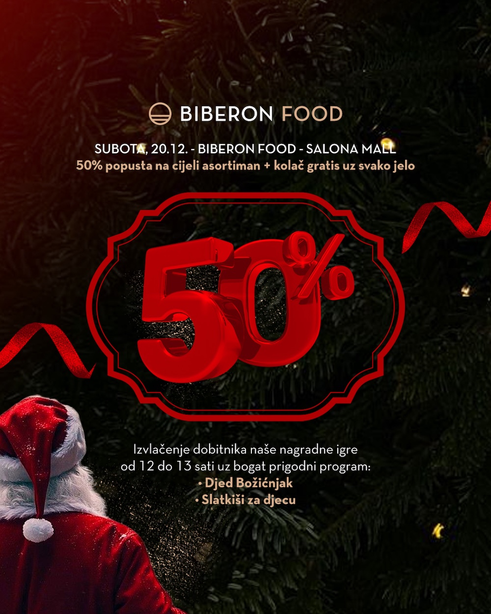 Ove subote, 20.12. na lokaciji Biberon Food u centru Salona Mall održat će se izvlačenje nagrada 'Biberon blagdanske čarolije'.