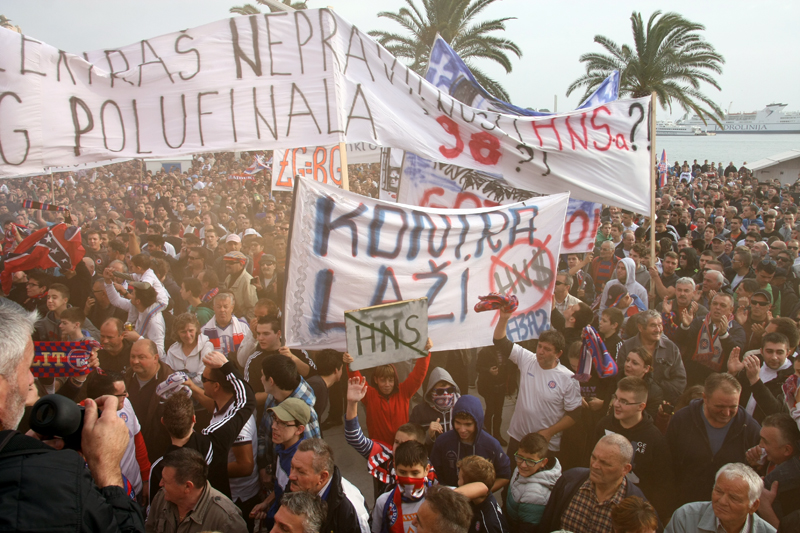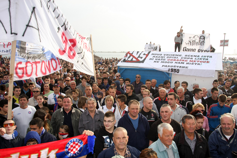 Na današnji dan 2014. godine održan je veliki prosvjed na Rivi, gdje se okupilo oko 30.000 Hajdukovih navijača kako bi izrazili neslaganje s politikom Hrvatskog nogometnog saveza i tražili promjene. Prosvjed je organizirala Torcida, a dogodio se sedam dana nakon neodigranog derbija Dinama i Hajduka u Maksimiru.