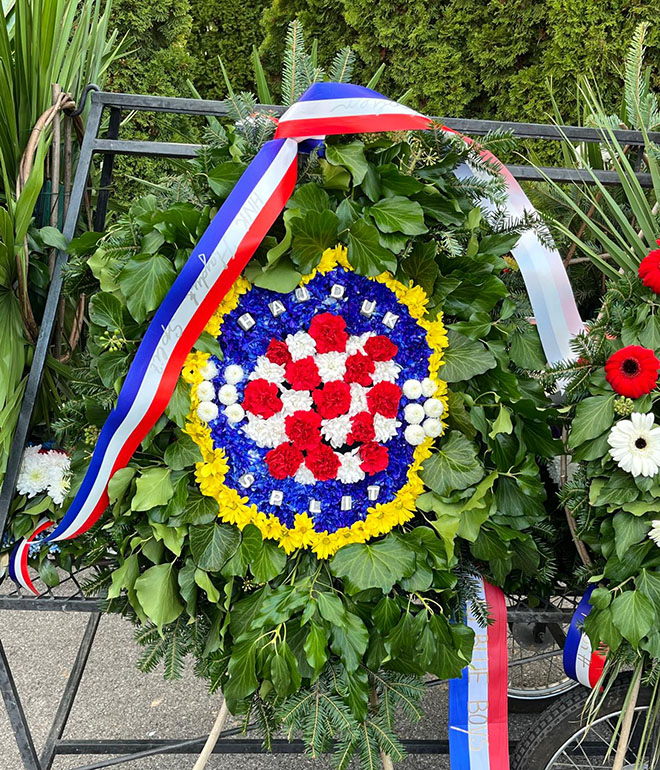 Među brojnim cvijećem i vijencima zapazili smo jedan splitskog kluba, poslao ga je službeni Hajduk, koji je tako odao počast Francuzu koji se došao boriti za neovisnu Hrvatsku.