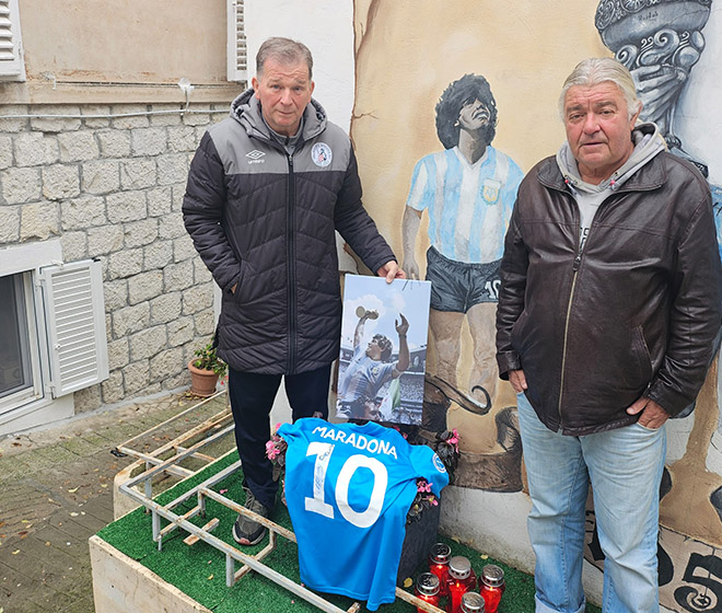 Danas je Maradonina peta godišnjica smrti, njegovi vanzemaljski potezi pamtit će se dok je svijeta i nogometa, a počast mu je, evo, odana i od starih torcidaša u Splitu.