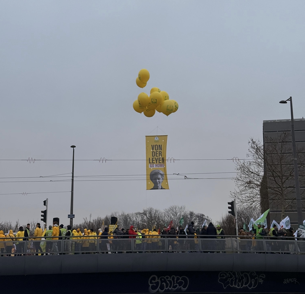 Podsjetimo, Europska unija ima najviše standarde proizvodnje hrane, a europski poljoprivrednici su obvezni poštivati izuzetno stroge ekološke, radne i zdravstvene propise koji značajno povećavaju troškove proizvodnje i stavljaju naše poljoprivrednike u nepovoljan položaj prema zemljama Mercosura koje imaju znatno blaže propise, i to u tri ključne kategorije: pesticidi, hormoni i GMO. Osim štete za poljoprivredu, to postavlja pitanje i kakvu hranu ćemo dobiti na europsko tržište. Nezadovoljni inzistiranjem na ovakvom sporazumu, prosvjednici su i transparentom poručili predsjednici Europske komisije: 'Ursula odlazi!'
