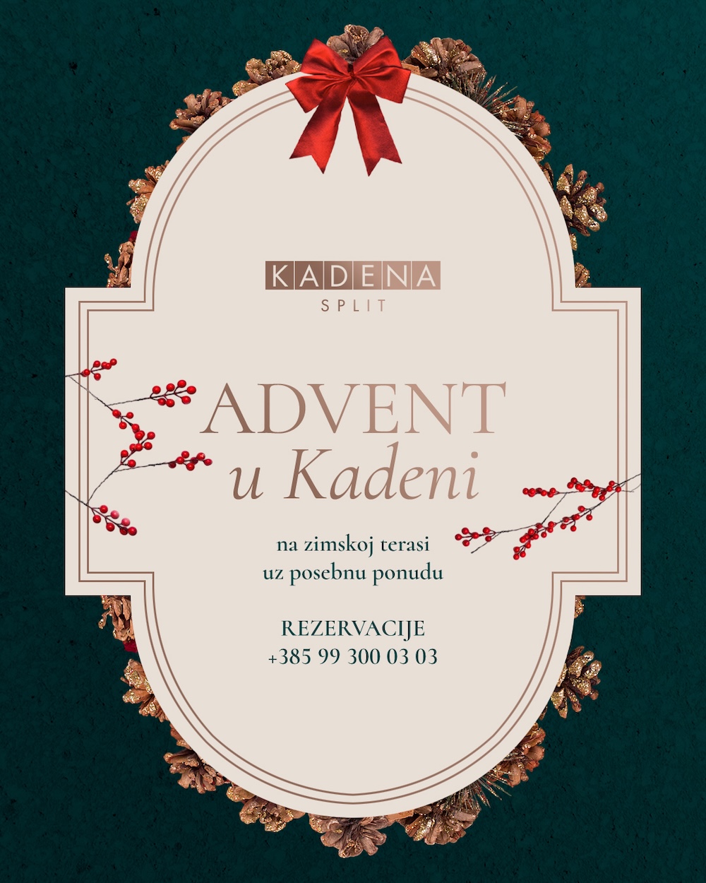 Svoj stol rezervirajte pozivom na broj 099 300 0303, a dodatne informacije potražite na službenim Facebook i Instagram stranicama Kadene.
