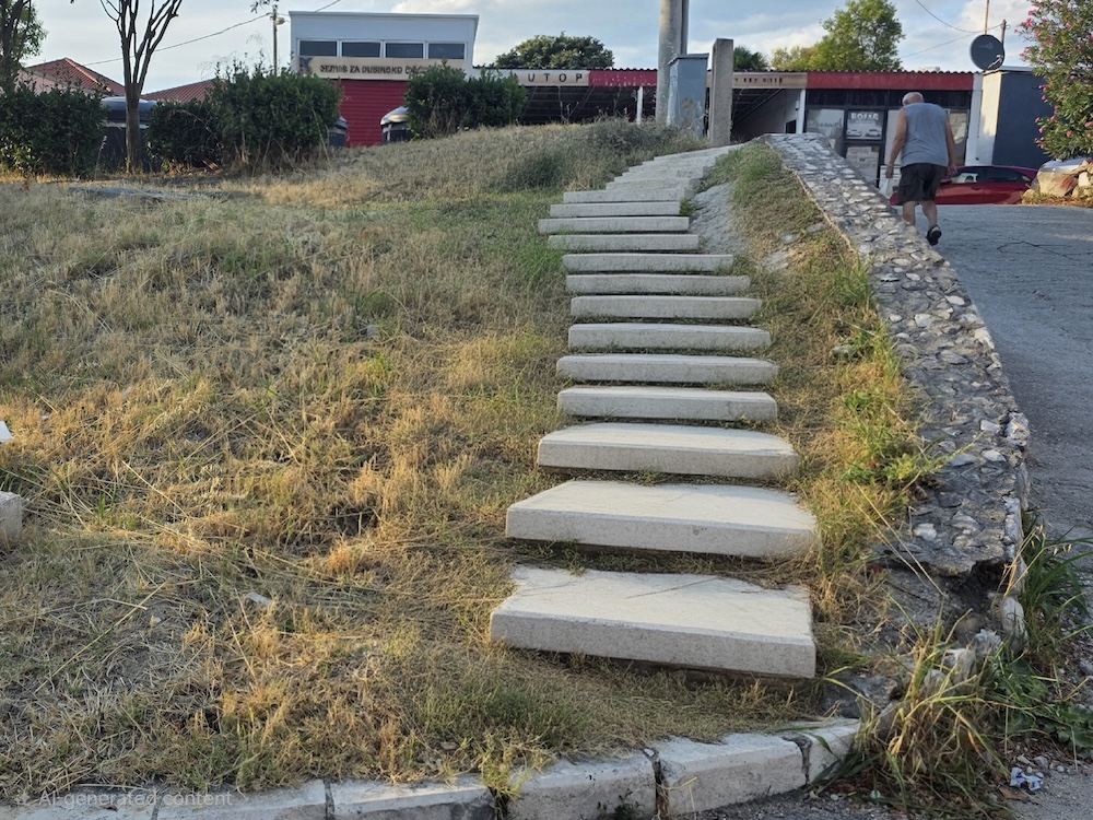 Da bi izbjegli to predložio je, kaže, u komunikaciji s građanima te ulice izradu stepenica koje bi riješile problem. Kako bi to izgledalo prikazao je fotografijom koju je izradila umjetna inteligencija.