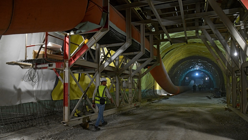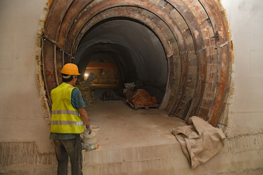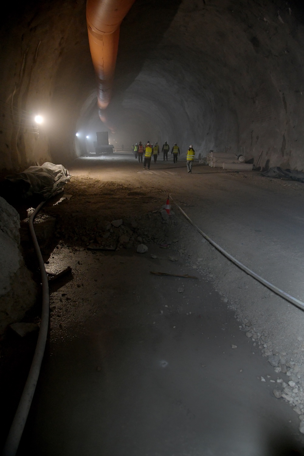 Navukli smo reflektirajuće odijelo, stavili kacigu na glavu i zavukli se u utrobu Kozjaka – glavnom cijevi koja seže 1,5 kilometara u dubinu, prema Kaštelima. U tako urednom tunelu kaciga je u jednom trenutku izgledala suvišno, ali zaštitna maska pokazala se nužnijom jer se sitna prašina uvlačila u nosnice. Ne do granice nepodnošljivosti, ali dovoljno da obilazak postane izazovan. To nije spriječilo kolonu reflektirajućih prsluka da se kreće sve do kraja tunela, gdje nas je čekala stijena koju tek treba probiti kako bi ugledali more.