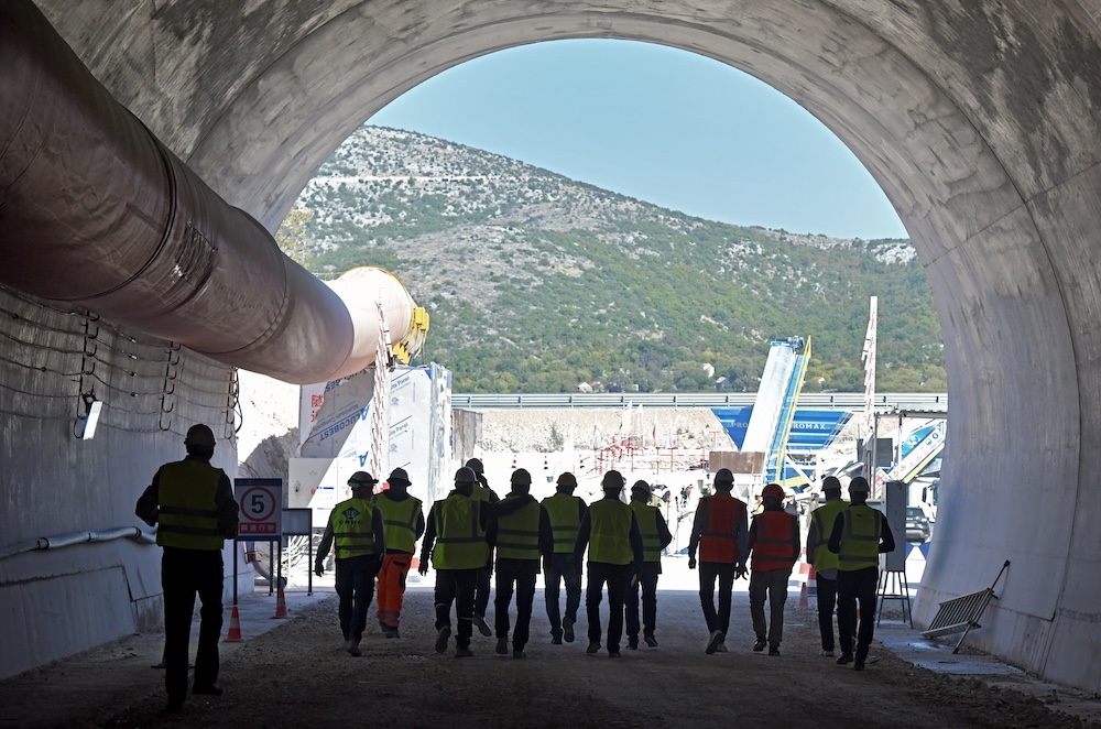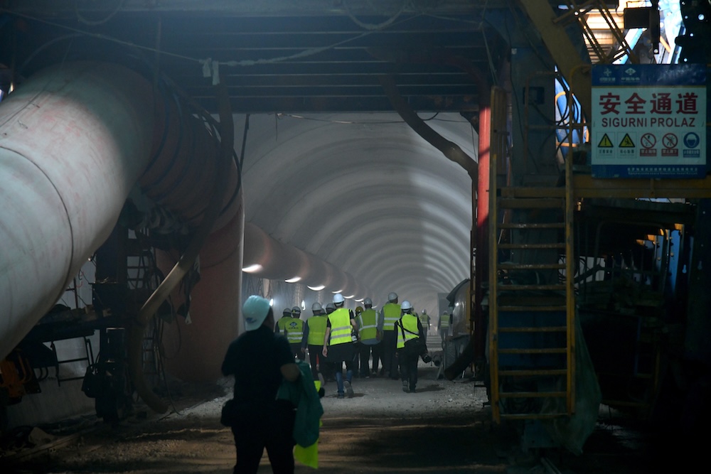 Gradilište na sjevernoj strani tunela Kozjak dočekalo nas je u sivkastom oblaku prašine. Okoliš je djelovao uredno, gotovo sterilno, bez ijednog papirića na podu, a nije se činilo da je to posljedica posebnih priprema zbog dolaska medija. Kineskim izvođačima ovo je očito standard.