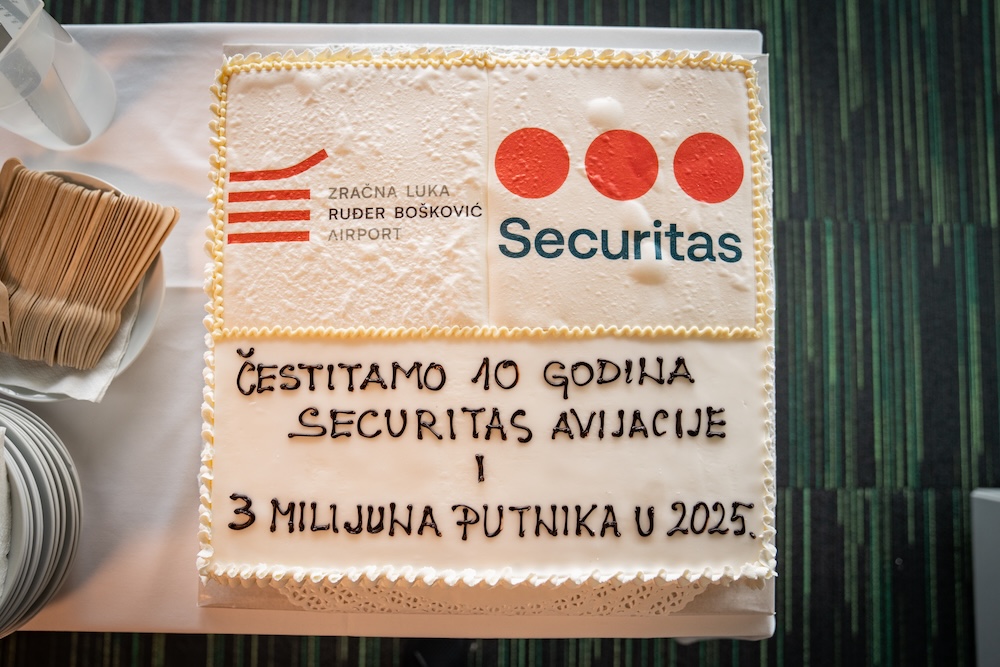 'Ova obljetnica ne bi bila moguća bez predanosti i truda naših djelatnika. Zahvaljujem im na profesionalnosti i angažmanu. Čestitam našim partnerima iz Zračne luke Ruđer Bošković na impresivnom broju od 3 milijuna putnika, što su ostvarili već do 30. listopada ove godine. Povećanje od 1,3 milijuna putnika u posljednjih 10 godina pokazuje koliko je važno kontinuirano podizati standarde sigurnosti. Securitas Hrvatska osigurava zaštitu putnika, zaposlenika i zrakoplova na najvišoj razini. Danas smo prisutni u Dubrovniku, Puli i Zagrebu, što potvrđuje našu stručnost u zaštiti zračnih luka i avio kompanija', rekao je.