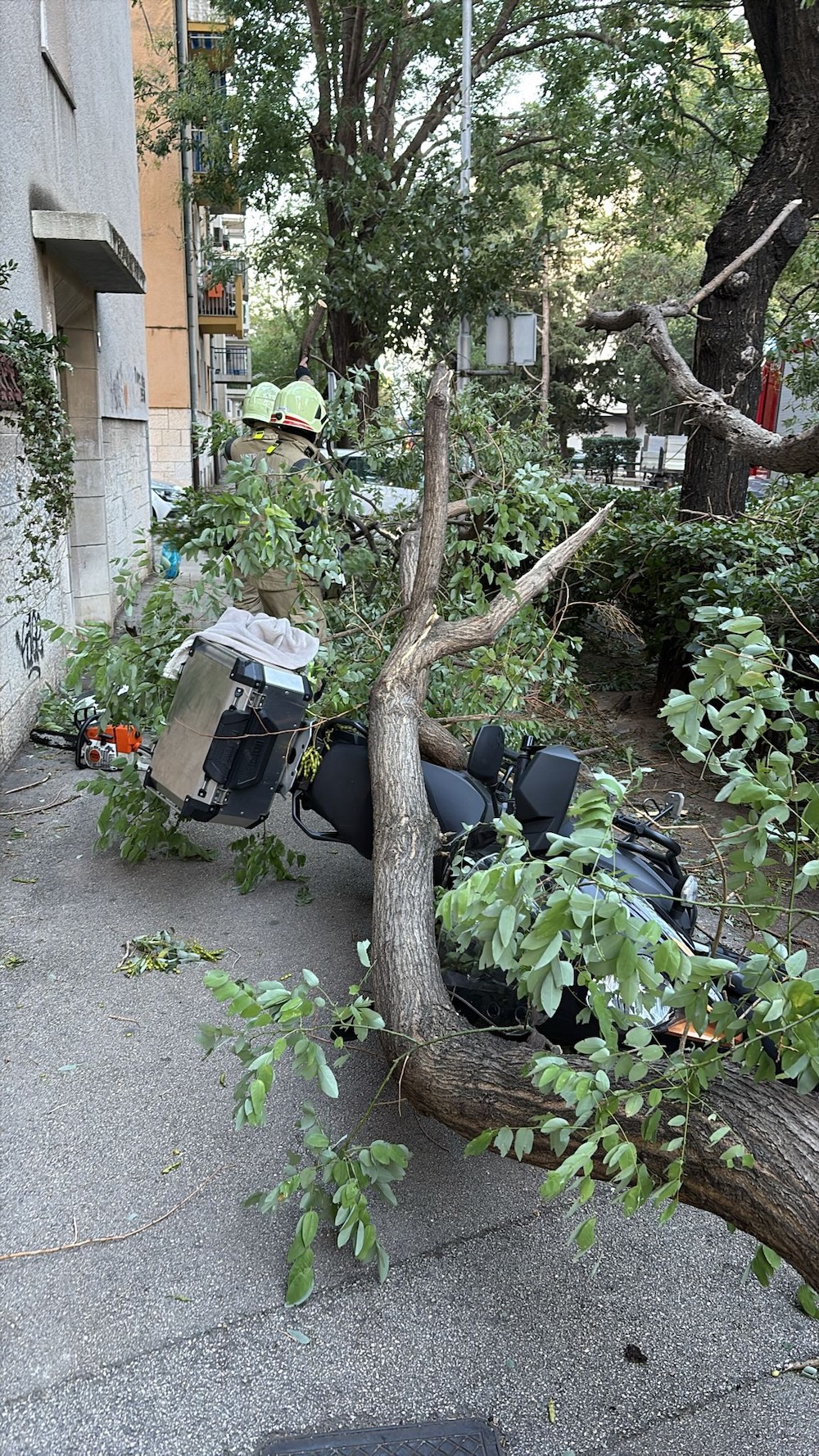 Nije najbolje jutro dočekalo stanovnike Spinuta. Pod naletima jake bure, nešto prije sedam sati, velika grana stabla odlomila se i pala na tri parkirana automobila u Teslinoj ulici, a u padu je srušila i jedan motocikl. Vatrogasci su odmah intervenirali te uklonili granu s vozila, dok vlasnike sada čeka prijava štete.