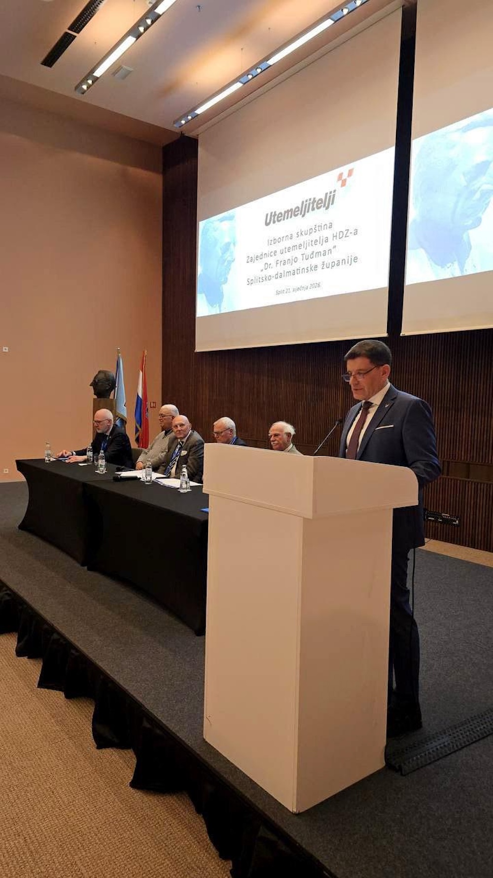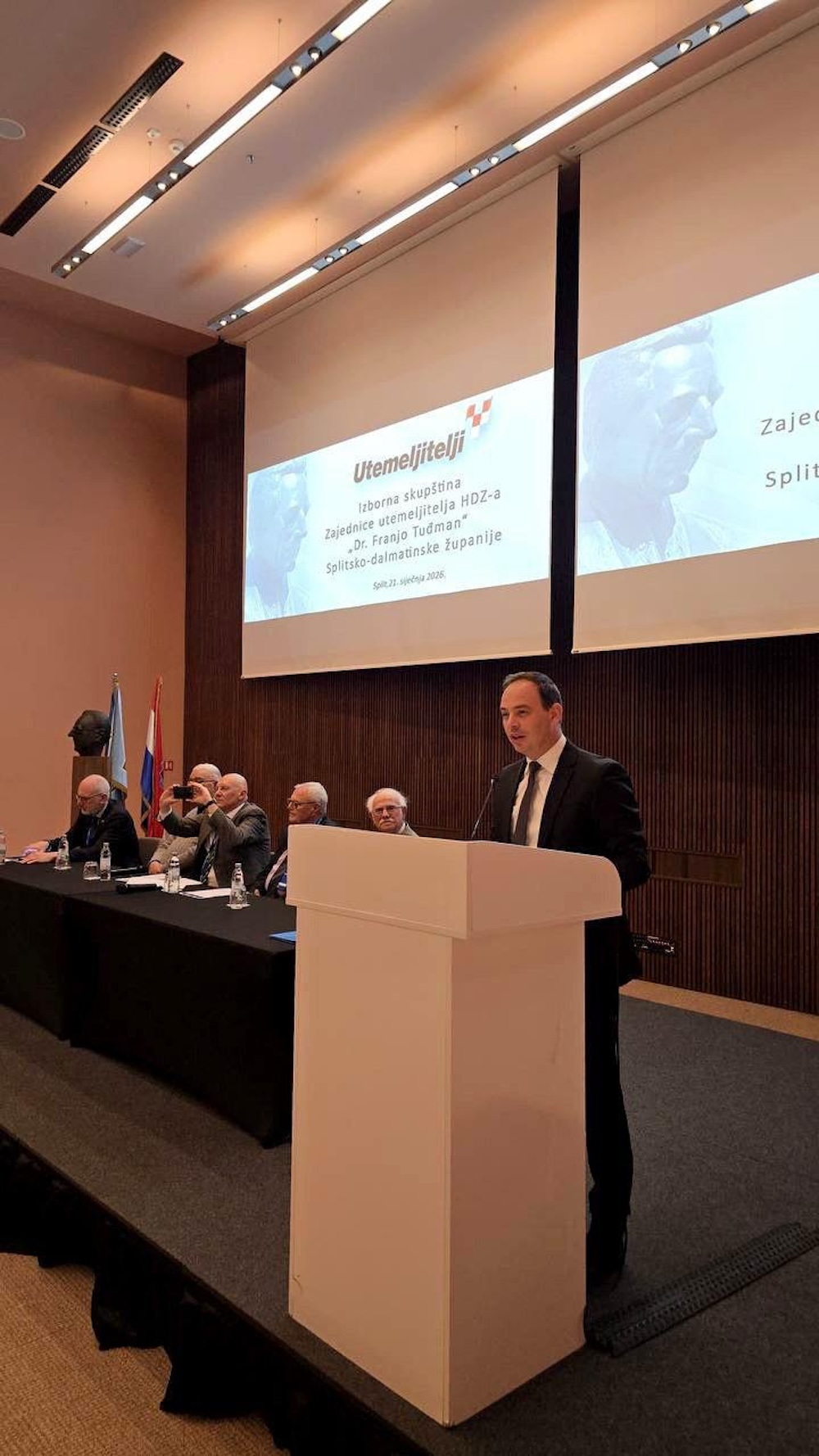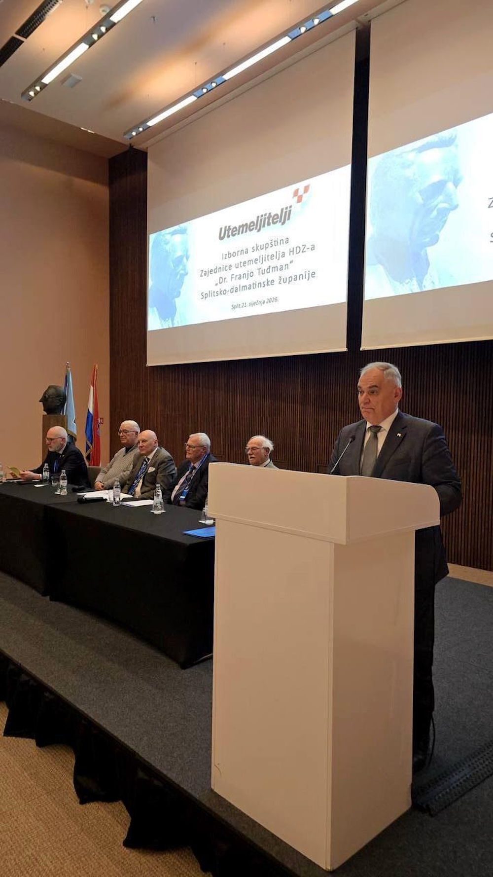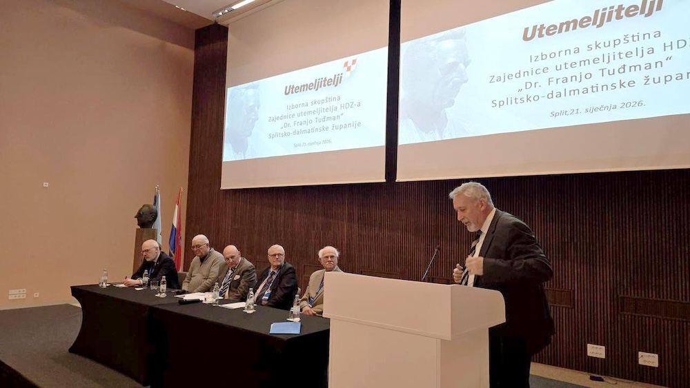 U splitskom hotelu Radisson Blue sinoć je održana redovna Izborna skupština Zajednice utemeljitelja HDZ-a Dr. Franjo Tuđman Splitsko- dalmatinske županije. U punoj dvorani hadezeovaca, koji su se davne 1989. i 1990. odazvali pozivu utemeljitelja hrvatske države, dr. Franje Tuđmana, za predsjednika Zajednice utemeljitelja HDZ-a SDŽ ponovo je izabran Alen Gojak.