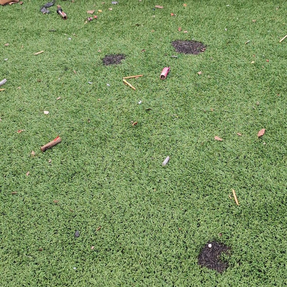 Tereni Sportskog centra na Brdima su u novogodišnjoj noći su gotovo uništeni. Krateri od pirotehničkih sredstava, ispražnjeni vatrogasni aparati, porazbijane kante za otpad, samo su dio slike iživljavanja na terenu koje koriste svi građani.
