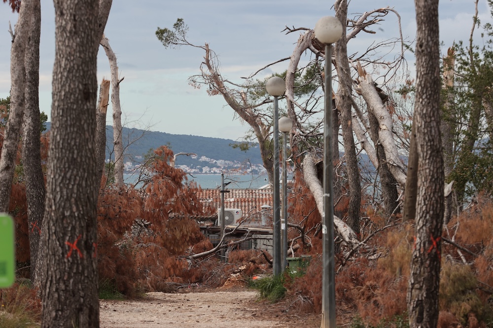 U park šumi Marjan počeli su radovi na izvlačenju četiri tisuće porušenih stabala koja su stradala u velikoj oluji početkom srpnja. Broj vjerojatno neće biti konačan, i to zbog potkornjaka, nametnika koji je već uzrokovao pustošenje šume na Marjanu.