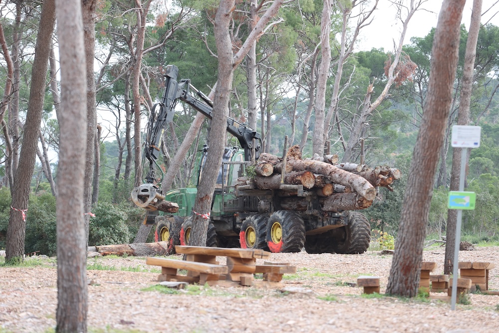 Foto: Veljko Martinović POČELI RADOVI: S Marjana će ukloniti 4000 porušenih stabala, ali ih zbog potkornjaka možda bude i više