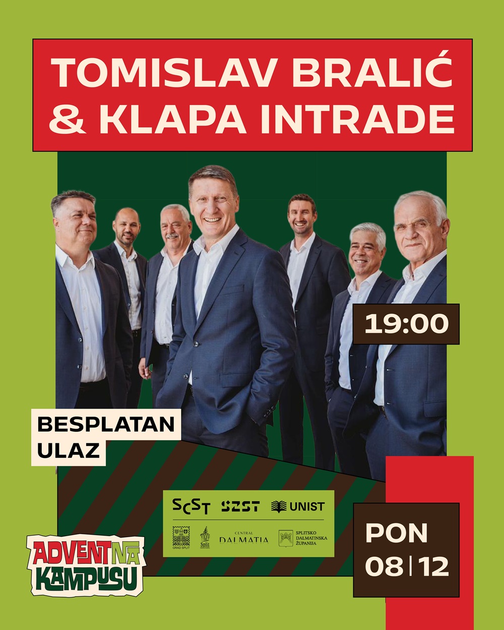 Upravo u tom duhu zajedništva organizatori su najavili i poseban glazbeni događaj. U ponedjeljak će Tomislav Bralić i Klapa Intrade, u godini u kojoj obilježavaju 40 godina djelovanja, održati koncert posvećen svim ljubiteljima klapske pjesme. Posebna je namjera približiti hrvatsku tradiciju i kulturnu baštinu stranim studentima koji studiraju u Splitu, kako bi kroz klapsku pjesmu upoznali jedan od najprepoznatljivijih elemenata dalmatinskog identiteta. Istodobno, koncert je zamišljen kao blagdanski poklon svim građanima Splita koji žele uživati u glazbi i blagdanskoj atmosferi i to besplatno!