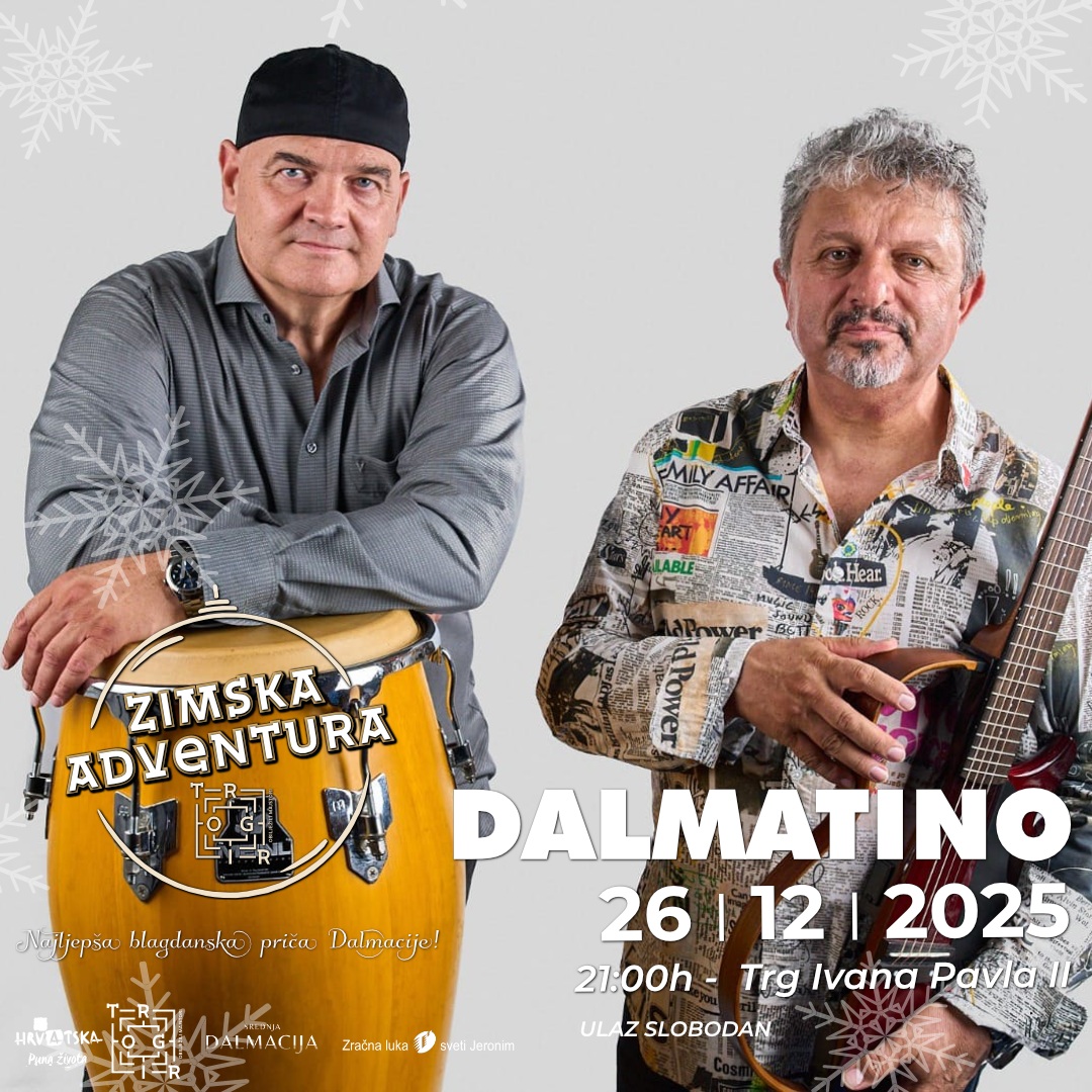 U sklopu bogatog blagdanskog programa Zimske Adventure u Trogiru, u petak, 26. prosinca, s početkom u 21 sat, na Trgu Ivana Pavla II održat će se koncert popularne grupe Dalmatino!