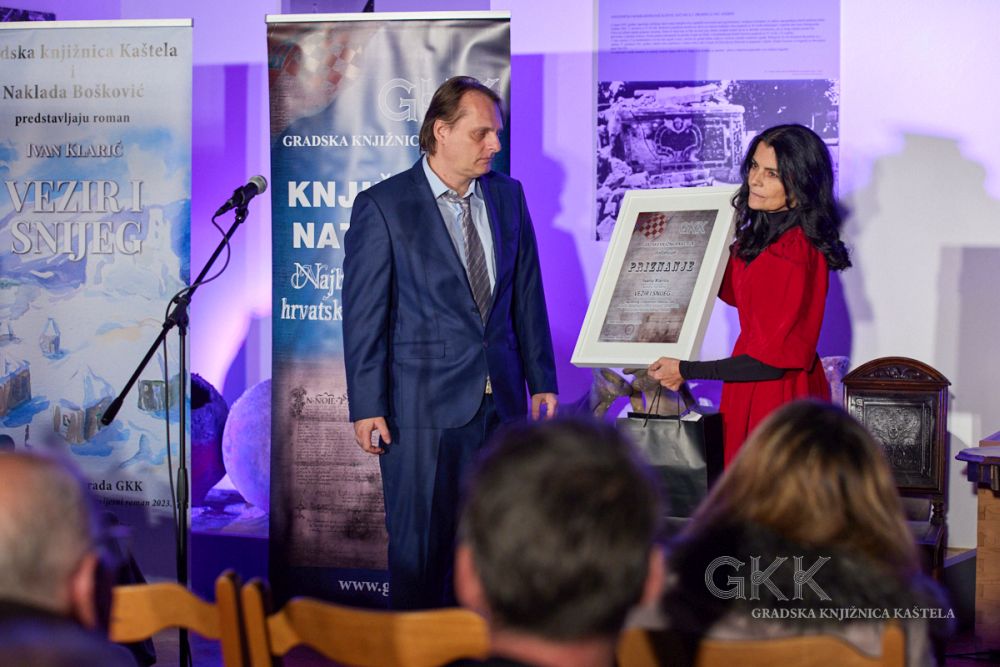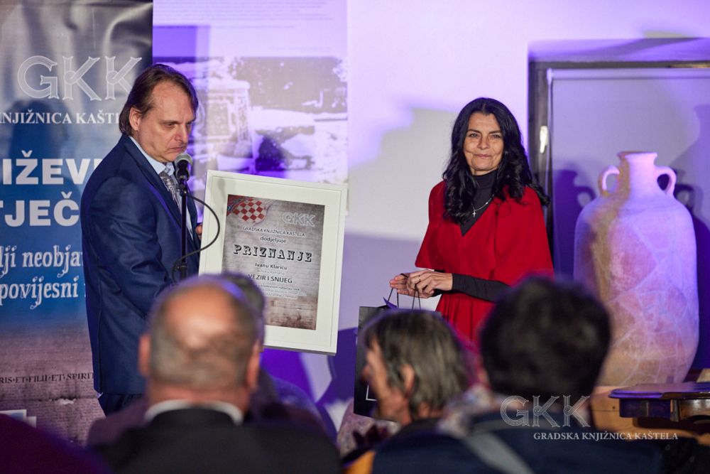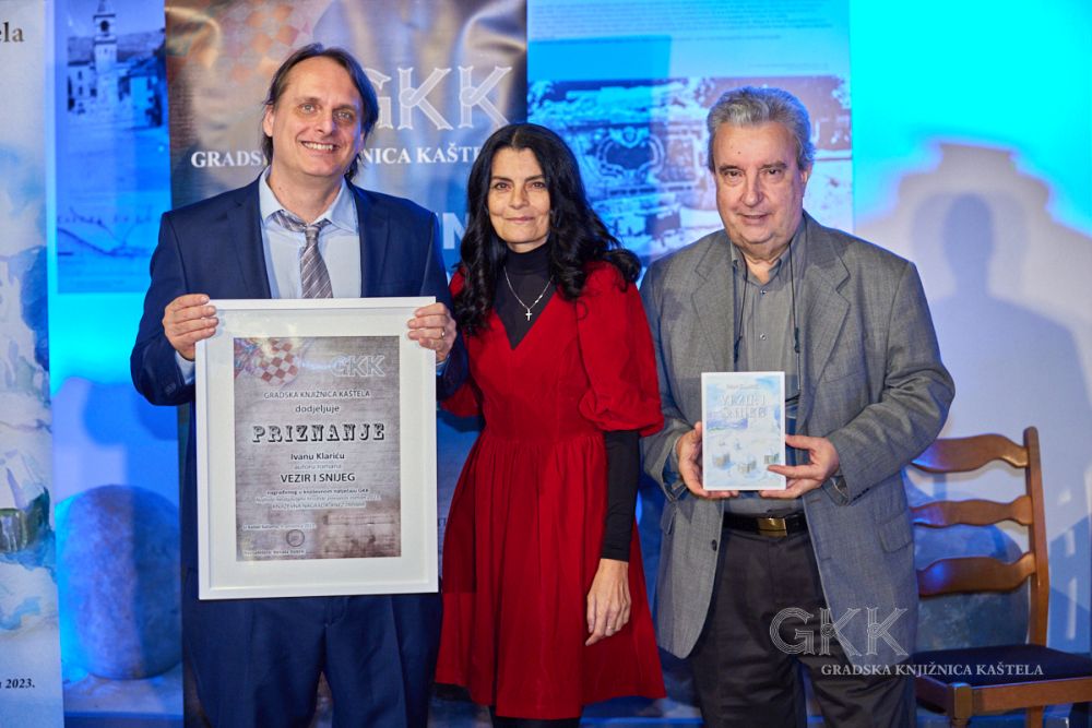 Autoru romana Vezir i snijeg Ivanu Klariću ravnateljica Gradske knjižnice Kaštela Renata Dobrić uručila je plaketu/priznanje i novčanu nagradu Grada Kaštela u iznosu od 1327,23 € (10 000,00 kuna), a istom prilikom predstavljeno je i tiskano izdanje romana koji je objavljen u nakladničkoj kući Naklada Bošković u sunakladništvu s Gradskom knjižnicom Kaštela.