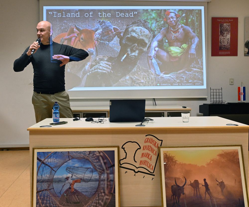U Splitu je večeras u Gradskoj knjižnici Marka Marulića održano predavanje 'Otok smrti (Indonezija)' putopisca i fotografa Jurice Galića Juke. Autor je okupljenima predstavio najzanimljivije trenutke sa svog jednomjesečnog putovanja 2025. godine po Sumatri, Sulawesiju i Javi, tijekom kojeg je prešao 2.832 kilometra i zabilježio 25 lokacija i događaja.
