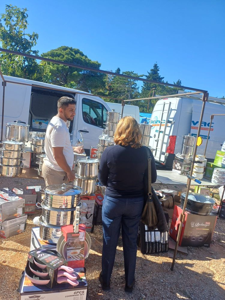 'Prodavači su od jučer ovdje, tvrde da su cijene 'sportske'. Gratis nakit, povoljna kapula, zabranjeno slikavanje - svatko ima svoju poruku. Slavonci prodaju cvijeće, Varaždinac starinske porculanske zdjele, Afrikanac drvene figure...