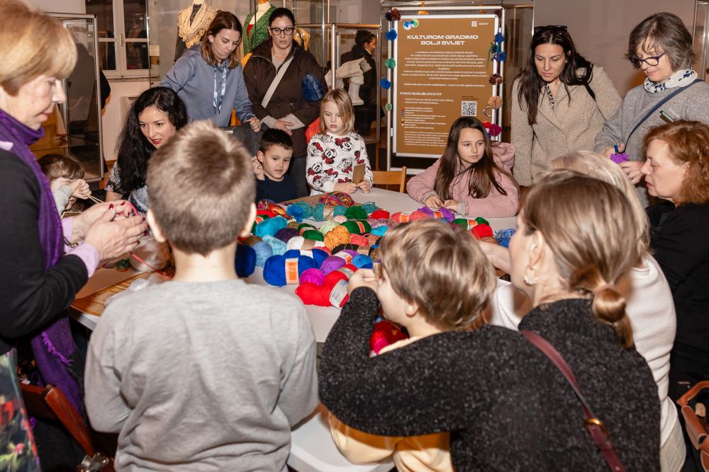 Djeca su se rado uključila i u umjetničku akciju 'Kulturom gradimo bolji svijet', koja se odvijala tijekom cijele večeri. Posjetitelji svih uzrasta zajednički su izrađivali umjetničku instalaciju koja je postavljena na pročelje muzeja kao trajni vizualni zapis zajedničkog sudjelovanja publike. Kroz izbor boja i elemenata sudionici su izražavali osobne poruke i stavove o kulturi kao snazi koja povezuje, potiče dijalog, razumijevanje i zajedništvo, a posebno je zapaženo s velikim entuzijazmom sudjelovanje djece i mladih, čime je naglašena važnost ranog uključivanja publike u kulturne sadržaje.