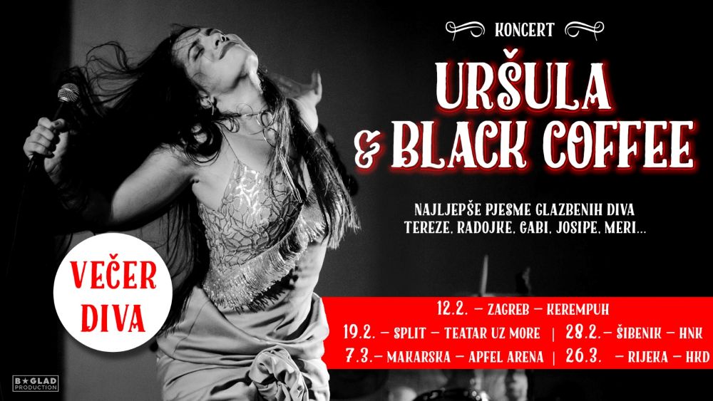 Hrvatska popularna glazba nezamisliva je bez njenih diva kao što su Tereza Kesovija, Gabi Novak, Josipa Lisac, Radojka Šverko, Meri Cetinić... Upravo njihovim iznimnim talentima i bezvremenskim pjesmama posvećen je koncert 'Najljepše pjesme hrvatskih diva Tereze, Gabi, Josipe, Radojke, Meri...' u izvedbi Uršule Najev i sastava Black Coffee.