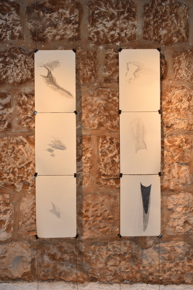 Kako rad prikazuje sjenu predmeta, tako sam se i odlučila za crteže u olovci. Osim što trag koji olovka ostavlja na papiru podsjeća na sjenu, omogućila mi je i brzo hvatanje sjene, ali i razigranost crteža koju sam postigla nježnim ali i agresivnijim pokretima ruke, dobivajući linije različitih debljina, smjerova i nijansi.