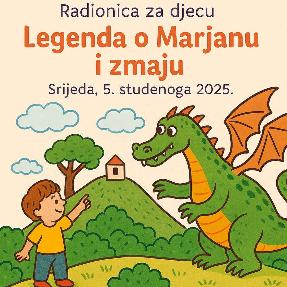 Djeca će na početku radionice poslušati kratku priču o zmaju s Marjana koji, prema predaji, nije bio strašan nego usamljen. Nakon razgovora o značenju dobrote, prijateljstva i hrabrosti, sudionici će izrađivati vlastite zmajeve od papira, kartona i boja. Svaki od njih imat će ime i ‘moć’, poput hrabrosti, ljubavi, smijeha ili zaštite.